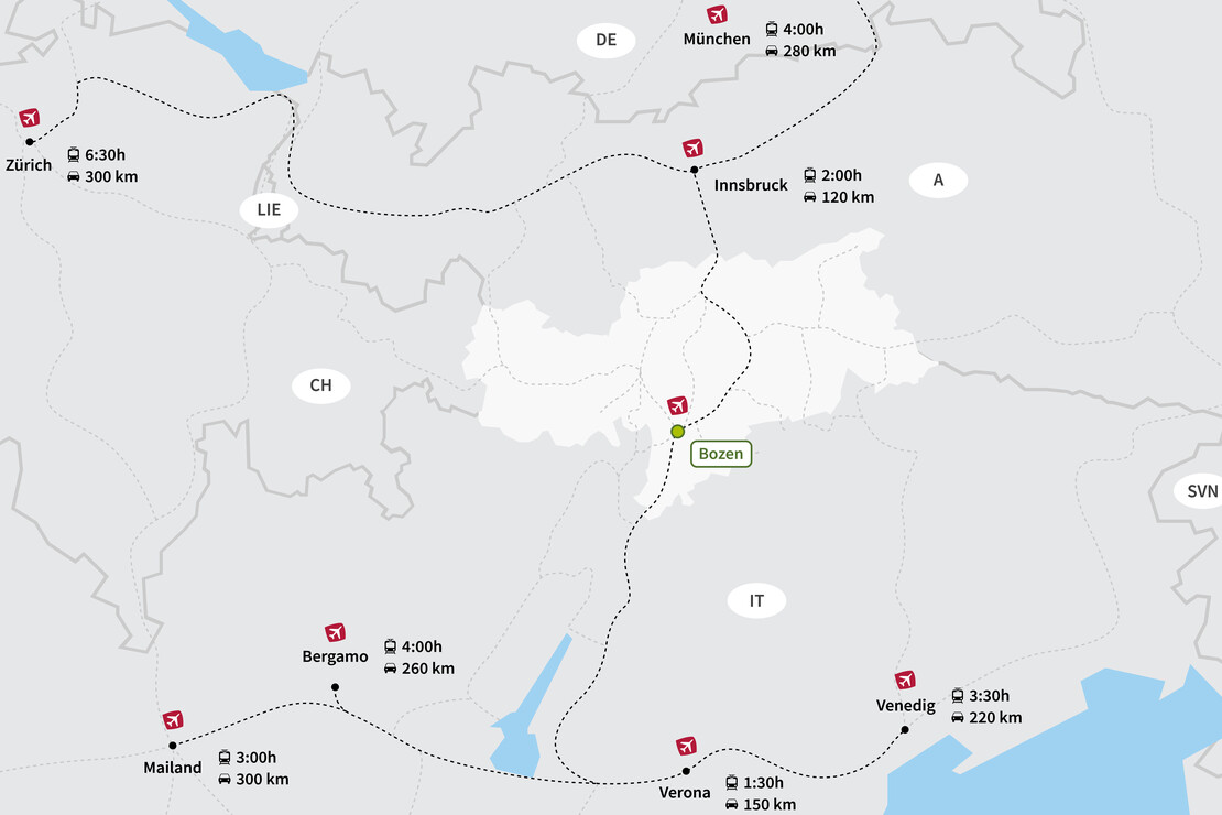 Charakteristisch für Bozen trifft hier Bergidylle auf pulsierende Stadt. Schon seit Jahrhunderten bekannt als bedeutender Handelsplatz, beherbergt Bozen heute eines der modernsten Messezentren Italiens.