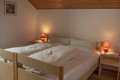 Unsere Ferienwohnungen sind für 2-6 Personen geeignet. Sie wohnen in 2 getrennten Zimmern + die Möglichkeit ein zusätzliches Doppelbettzimmer mit Bad zu buchen.