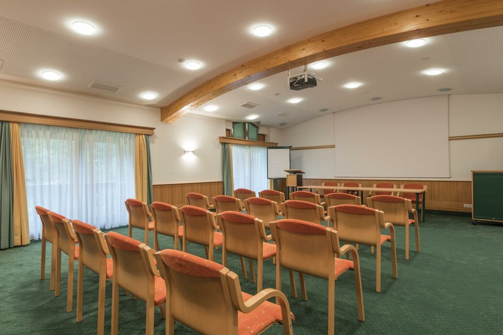 Der teilbare Tagungsraum in unserem Seminarhotel in Südtirol mit 120 m² Ausstellfläche und 75 m² Pausenzone verfügt über Tageslicht, einen Balkon und Schlernblick und ist selbstverständlich mit modernster Technik ausgestattet: