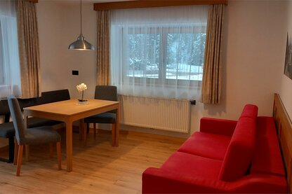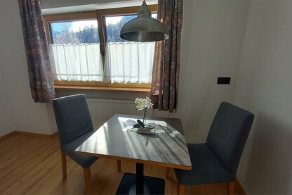 Das Haus liegt in einer schönen sonnigen Lage, 1,5 km außerhalb vom Zentrum, Richtung Innichen, mit eigenem Parkplatz. Vor dem Haus ist ein großer Garten mit Spielplatz.