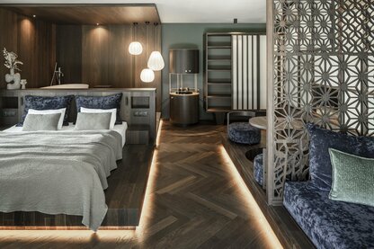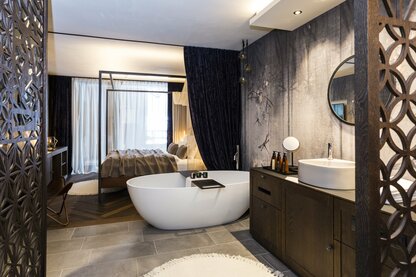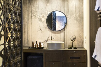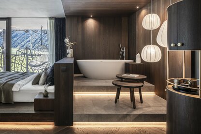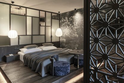 Die Design Suiten mit fernöstlichem Spa-Feeling und zeitgenössischem Touch sind ästhetische Rückzugsorte zum Durchatmen. Hier findet man eine vom traditionellen japanischen Ofuro inspirierte Outdoorbadewanne, himmlischen Betten und Meditations-Lounges. Für Gelassenheit und frische Energie.