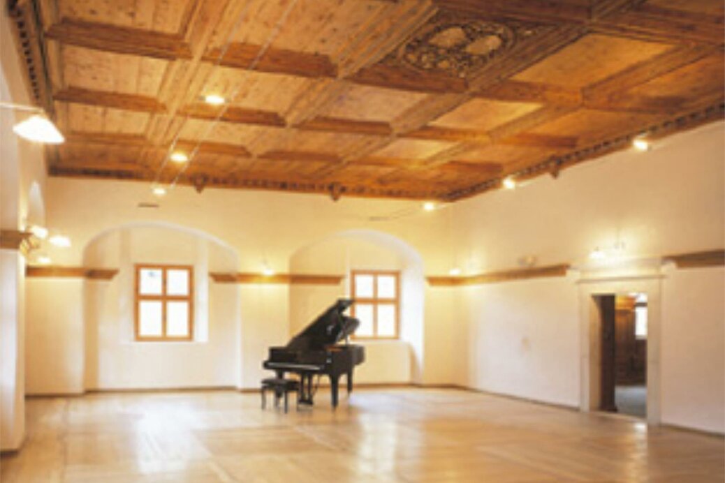 Den größten Raum des Schlosses mit beeindruckender Kassettendecke erreicht man durch ein mit Rosetten, Blattsternen und Muscheln reich verziertes Marmorportal. Gleichermaßen geeignet für repräsentative Veranstaltungen, Empfänge, Vorträge, Workshops und Konzerte.
