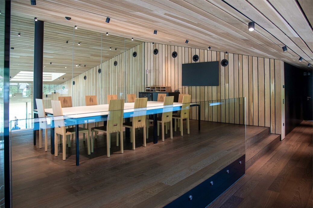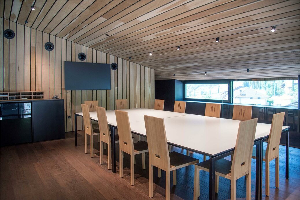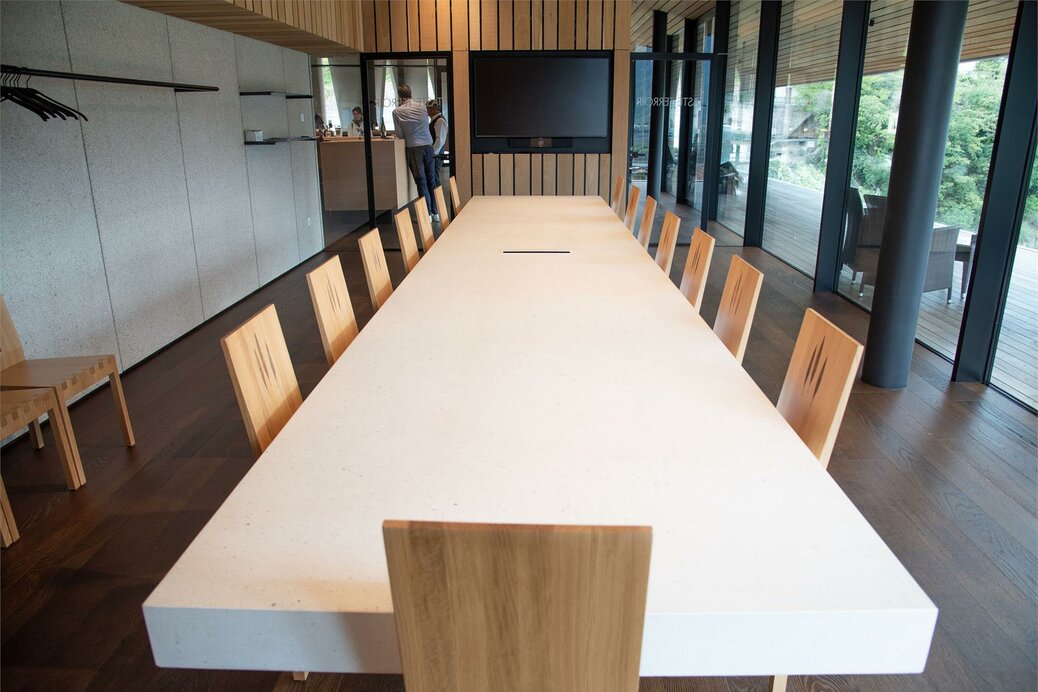 Das Mobiliar ist nicht verrückbar (Betontisch ist fest montiert). Der Verkostungsraum eignet sich wunderbar für Meetings, Telefonkonferenzen und Weiterbildungen.