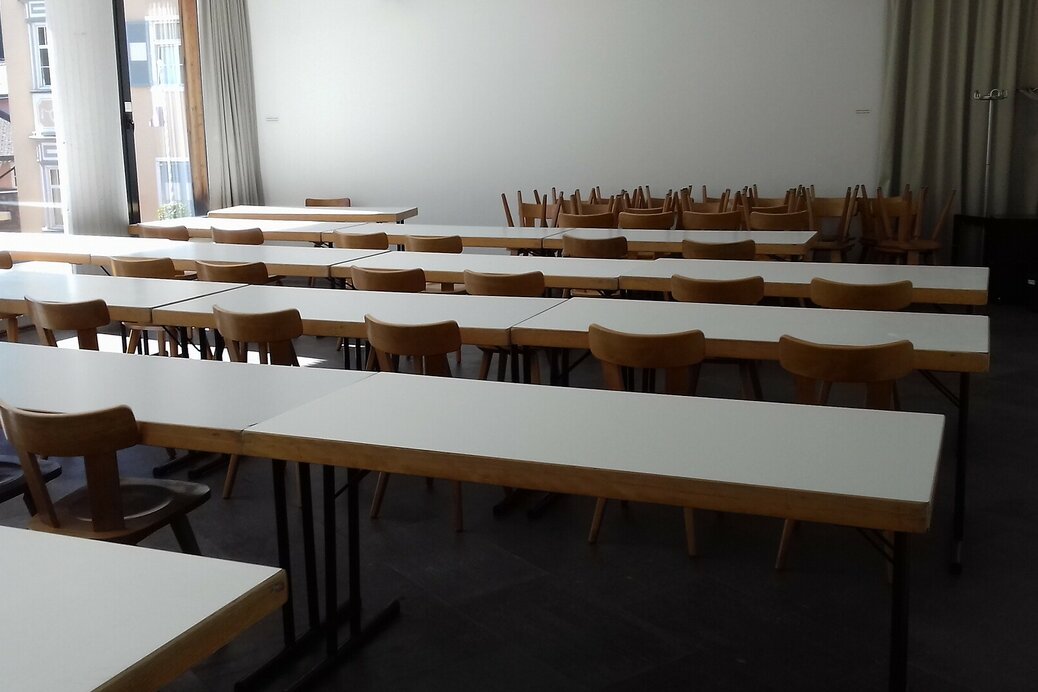 Der Saal befindet sich im unteren Erdgeschoss (-1).
