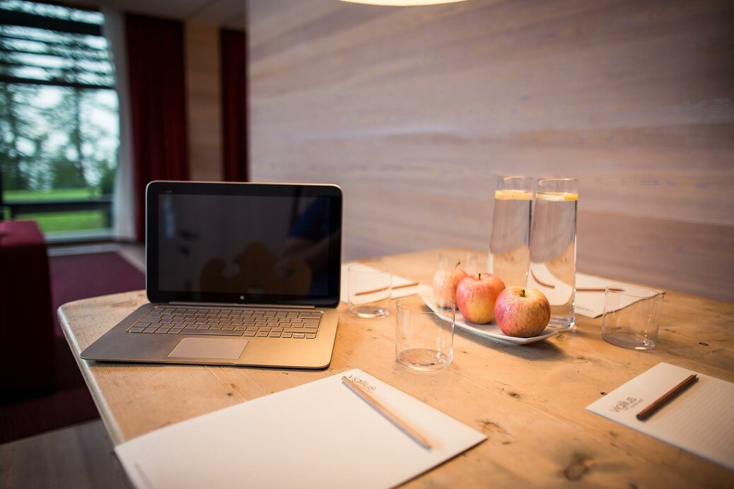 Fern vom Alltag wächst jene Offenheit, die großartige Ideen, neue Wege und klare Ziele hervorbringt – bei kleinen Tagungen ebenso wie bei großen Präsentationen.Raum für kreatives Arbeiten bieten unsere lichtdurchfluteten Tagungsräume. Die Räume sind ganztags von 9.00 bis 17.00 Uhr oder halbtags von 9.00 bis 13.00 Uhr bzw. von 14.00 bis 18.00 Uhr buchbar. Folgendes Equipment stellen wir zur Verfügung: Schreibblock und Stift für jeden Teilnehmer, Laptop, Beamer, Leinwand, Flipchart mit Stiftset, Pinwand, kostenloses W-LAN. Wir servieren vigilius Wasser und Holundersaft.