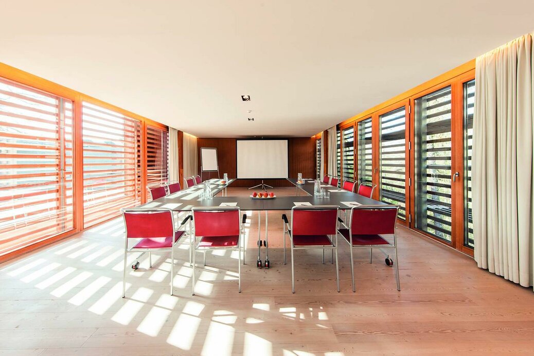 Licht, Luft und Stille erzeugen eine entspannte Atmosphäre, die den Geist dazu einlädt, neue Ideen zu entwerfen und Themen weiterzuentwickeln. Der Meetingraum im vigilius mountain resort bietet Platz für bis zu 80 Personen und einen direkten Zugang ins Freie.