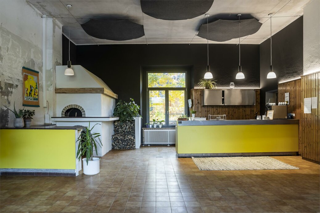 As a social area, the former trattoria is a special meeting place both during the day and in the evening. Connected to the terrace and equipped with a bar, a kitchen and the impressive pizza oven, it is probably the most comfortable room in the building and can be booked for workshops, readings and also private parties of any kind.