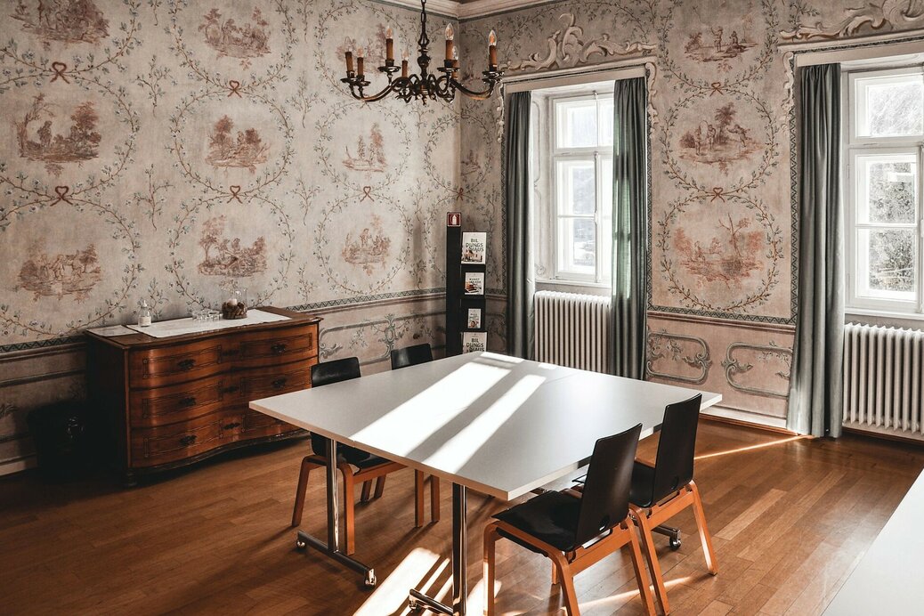 The Rococo Salon is unique in the Education House due to its full wall paintings. It is our smallest seminar room and is particularly suited for negotiations, discussions, or small-group meetings.