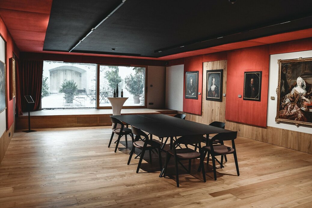 A Torggl is a traditional wine press from South Tyrol. One used to stand here next to wine barrels in this bright vaulted room, which today houses a modern seminar room. Through a ground-level entrance with large double doors, the small terrace in front of the Old Torggl can also be incorporated into the work.
