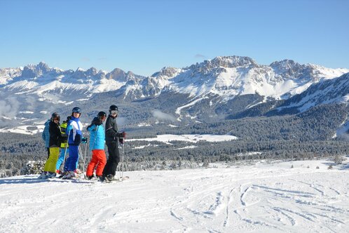 In the realm of the world’s most beautiful mountains winter sports enthusiasts embark on a journey of discovery on skis rather than simply going skiing. With a total of 1,200 km of downhill runs to choose from, all ‘skiable’ with a single ski pass, each day you can experience new and ever more stunning scenic descents. Everyone skiing on the slopes must hold valid public liability insurance that covers damaged and injuries to third parties. You can take out suitable insurance when purchasing your ski pass. Minors must wear a helmet when skiing, snowboarding or sledging. The association of 12 large ski resorts comprises 45 smaller, chocolate-box mountain villages ensuring that size must not necessarily mean an impersonal atmosphere. Around 300 snow groomers keep the slopes in perfect conditions and 450 state-of-the-art lift systems eliminate ‘down time’, for example when skiing against the clock on the famous Sellaronda circuit, the heart of the Dolomiti Superski area, and in all adjoining ski resorts. There is plenty to offer snowboarders and skiers of all levels of ability. The area includes several world-famous runs, for example the Bellunese run which begins at the summit of the Marmolada, the Lagazuoi run, the Tognola Uno, the Gran Risa, the Olimpia on the Tofana, the Trametsch, the Silvester and other runs which skiers dream of. The Dolomiti Superski area encourages skiers to indulge their sport to excess, though in fact each skier with a Superski pass uses the same lift on average only 1.34 times per day. At the same time the Sella massif, the Rosengarten, the Civetta and Sassolungo/Langkofel mountains beckon with wonderfully scenic spots where the urge to stop and savour the scenery becomes irresistible. The high mountain location of the ski slopes ranging from 4,920 ft/1,500 m to 10,500 ft/3,200 m and the 1,100 km of downhill pistes serviced by snowmaking equipment ensures abundant snow cover on almost 100% of runs. In addition, the sun shines on 8 out of 10 days. The combination of perfect snow conditions, plenty of sunshine, stunning views and ski runs ensures the most memorable winter sports holidays.