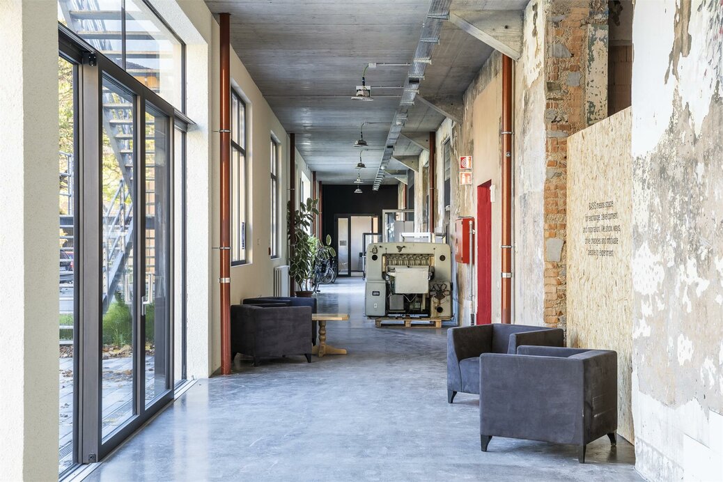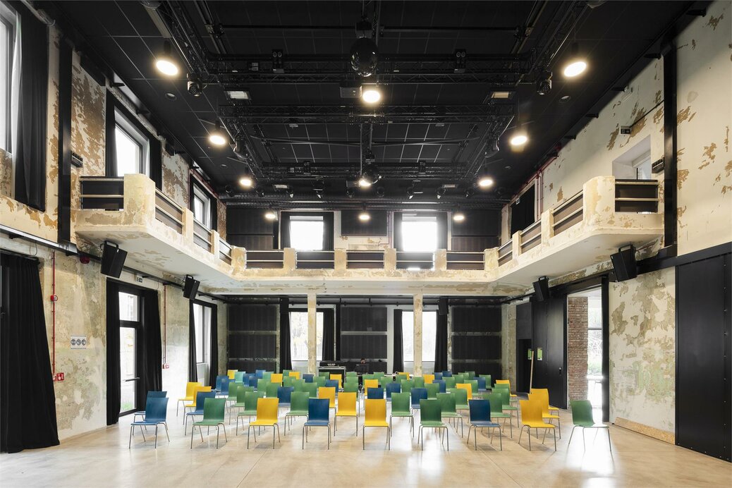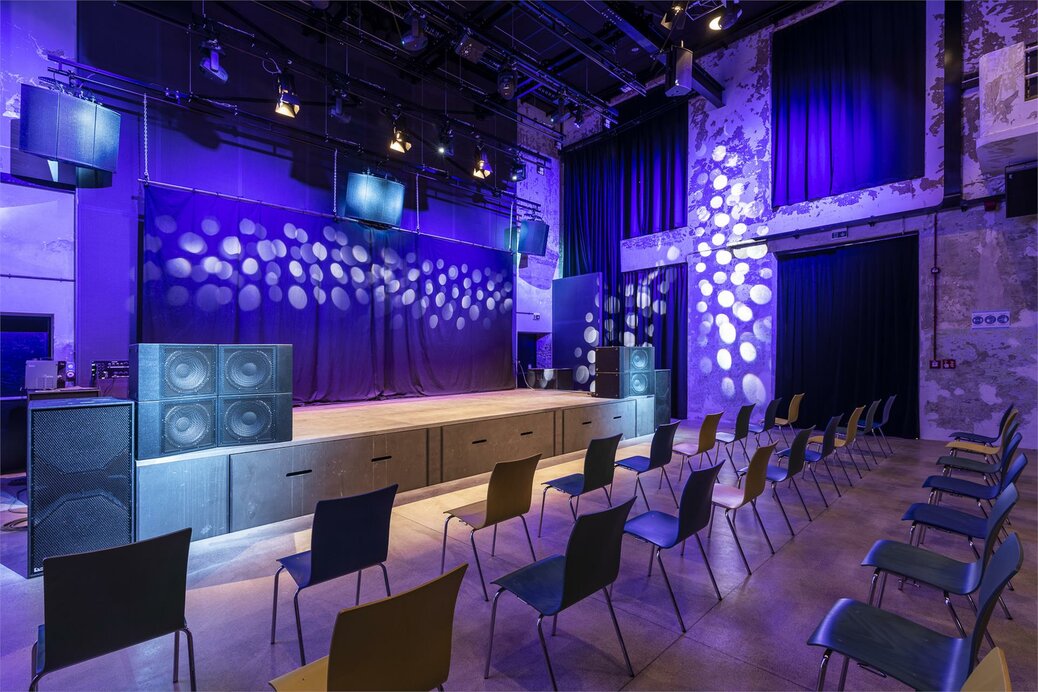 Il cuore dell'edificio è l'ex cinema della Caserma Druso. Ora è una sala eventi multifunzionale per il trasferimento di conoscenze e l'interazione e offre una sede unica per, conferenze, live-,