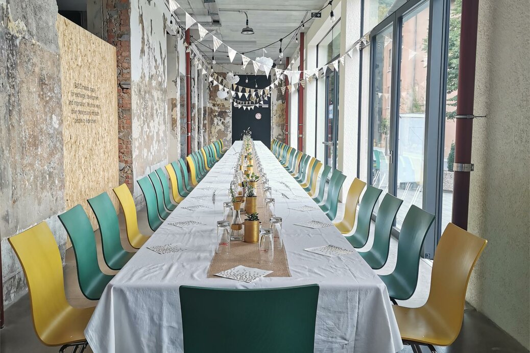 Come sala di ritrovo, l'ex trattoria è un luogo di incontro speciale sia di giorno che di sera. Collegato alla terrazza e dotato di bar, cucina e l'impressionante forno per la pizza, è probabilmente il locale più confortevole dell'edificio e può essere prenotato per workshop, letture e anche feste private di qualsiasi tipo.