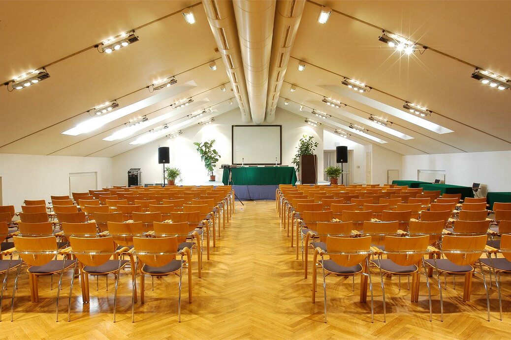 La Sala Conferenze si trova sul lato esterno dell’ala ovest del Kurhaus. È particolarmente indicata per meeting e conferenze in ambiente raccolto e trova inoltre impiego come sala supplementare per esposizioni nell’ambito di grandi eventi fieristici.