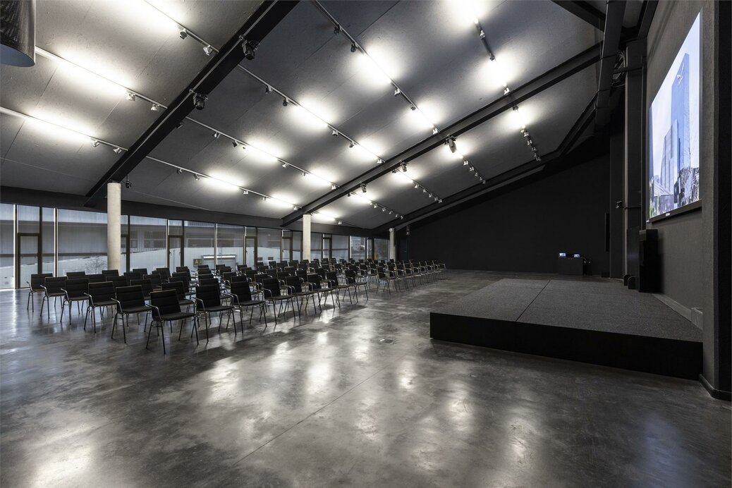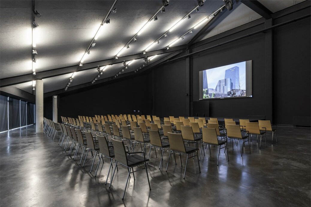 La sala conferenze si trova al primo piano (con ascensore) ed è circondata dai nostri showroom. Nel 2023, la sala è stata completamente ristrutturata e dotata di tecnologie all'avanguardia.