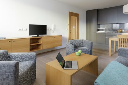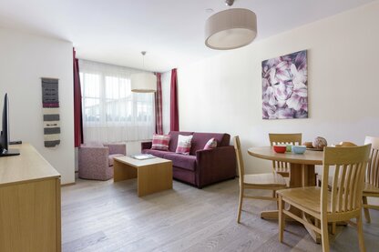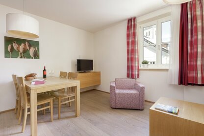 Nel Residence Innichen rinnoviamo la nostra garanzia di qualità. Lasciatevi stupire dal suggestivo arredamento, che riesce a unire il passato con il presente, le terre lontane con quelle più famigliari. Vi offriamo appartamenti spaziosi con una o due camere da letto, un bagno, un WC, lavastoviglie, tutti gli atrezzi in cucina, biancheria da letto e da bagno, asciugacapelli, gratis W-lan, lavatrice a uso comune, ingressi ridotti all'Acquafun (piscina di San Candido), posto macchina in garage