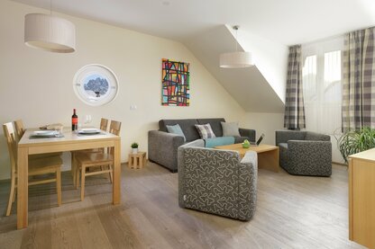 Tutti i nostri appartamenti hanno una superficie di circa 55-80 m² e dispongono di almeno due camere da letto con ingressi non comunicanti, in modo che si sentano a proprio agio sia le famiglie con bambini sia gruppi di amici che vogliono trascorrere insieme le ferie. Una sorpresa unica la riserva la nostra suite per due persone situata nel sottotetto, che colpisce soprattutto per il suo panorama da sogno. Rispecchiano il nostro tendere alla perfezione per quanto riguarda la qualità e la sostenibilità ambientale e esplicitano il legame tra la nostra famiglia, la nostra terra e le sue peculiarità. Per noi, famiglia di commercianti, questi valori sono stati da sempre di grande rilevanza.